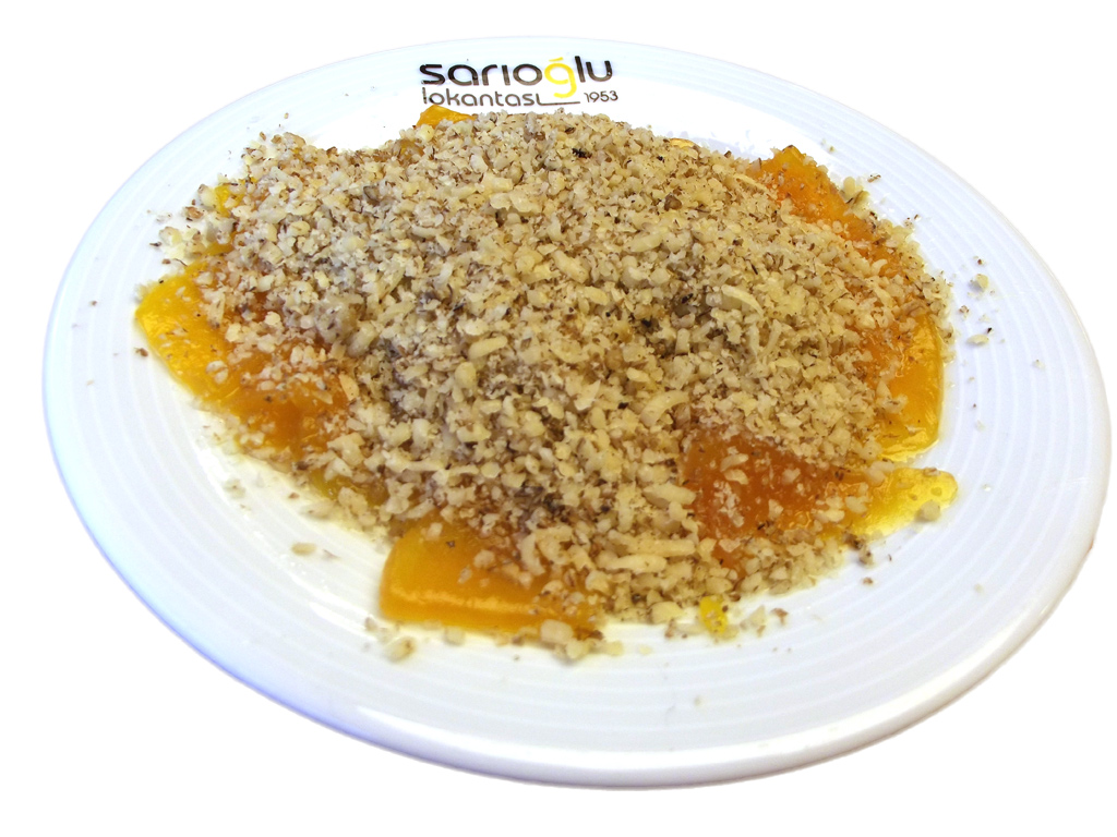 Kabak Tatlisi: Yöremizde yetisen kabaklarin en dogal haliyle, yöresel pisirme tekniklerimizle, ceviz ve tahin ilaveli sunumu...